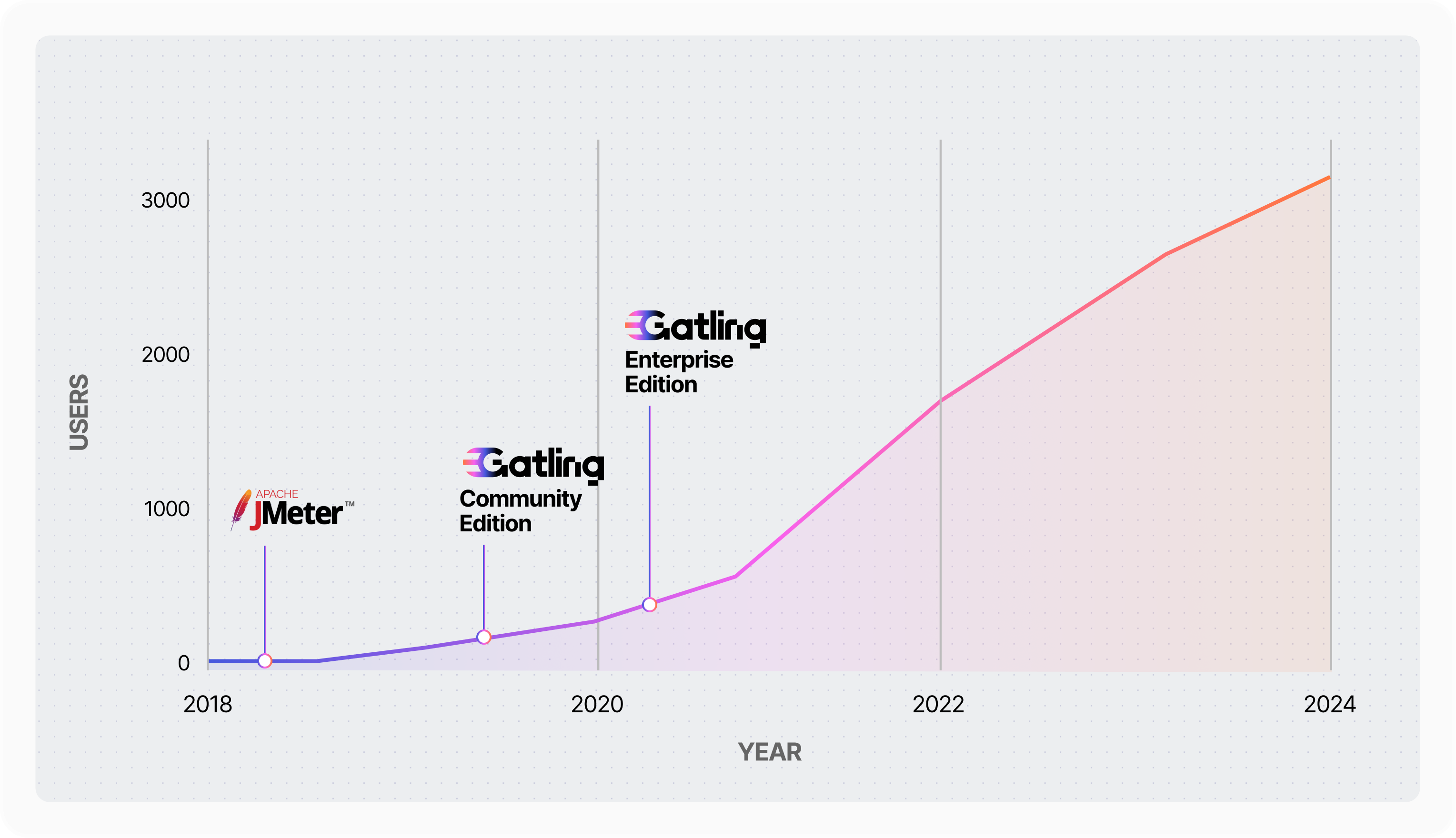 From fewer than 100 developers using Gatling in 2018 to over 3,000 today, without a single specialist bottleneck.