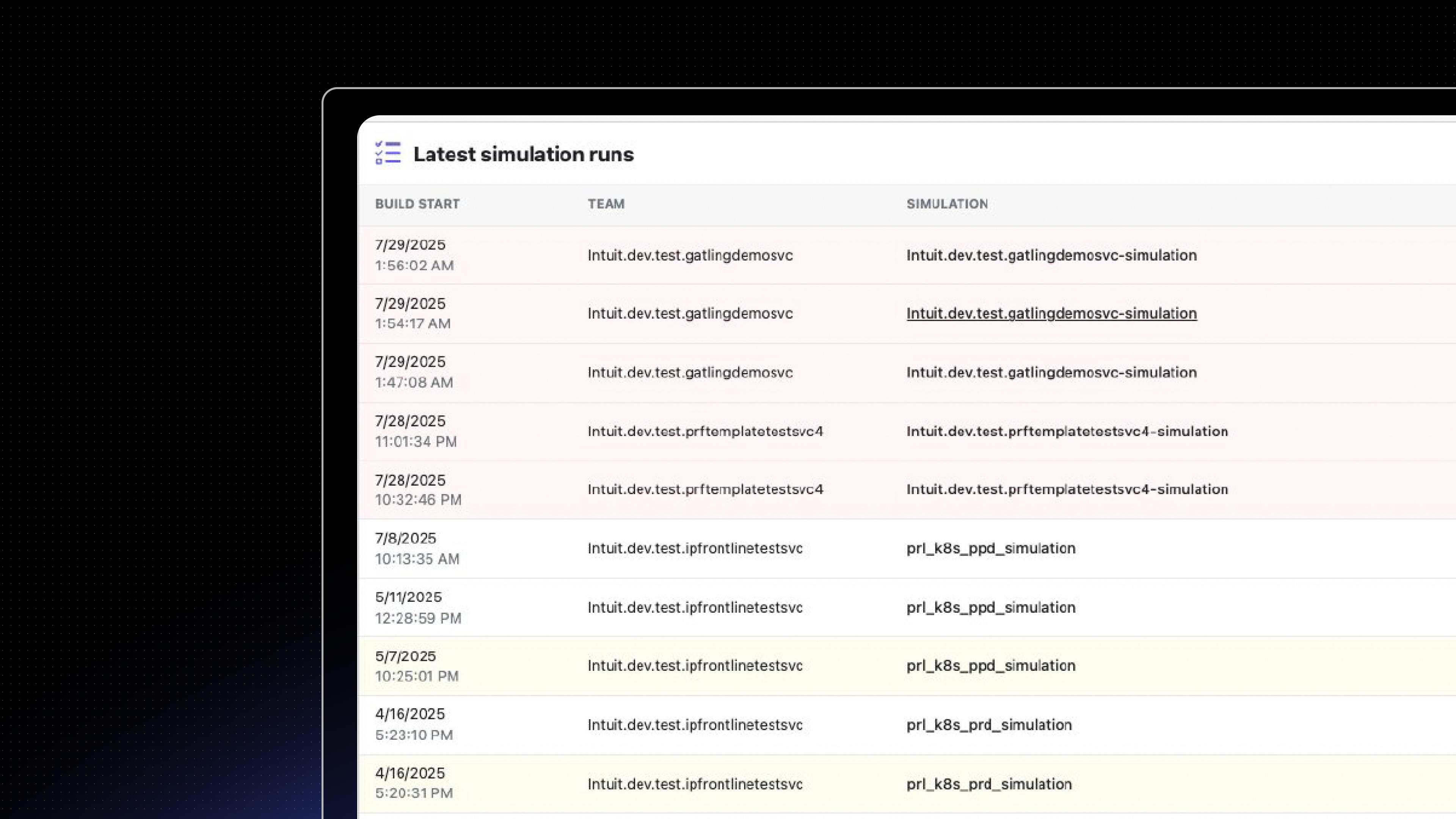 The Gatling Enterprise API is what made automation possible. Team provisioning, simulation creation, RBAC assignment, all triggered programmatically through Intuit's internal developer portal.