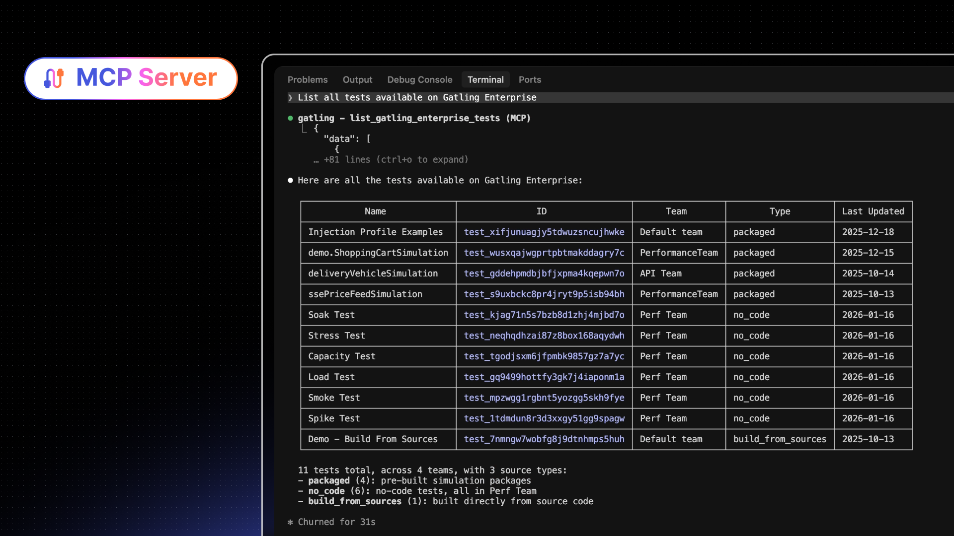 The Gatling MCP Server is a local server that exposes your Gatling Enterprise Edition account to Claude Code, Cursor, Windsurf, or any MCP-compatible client.