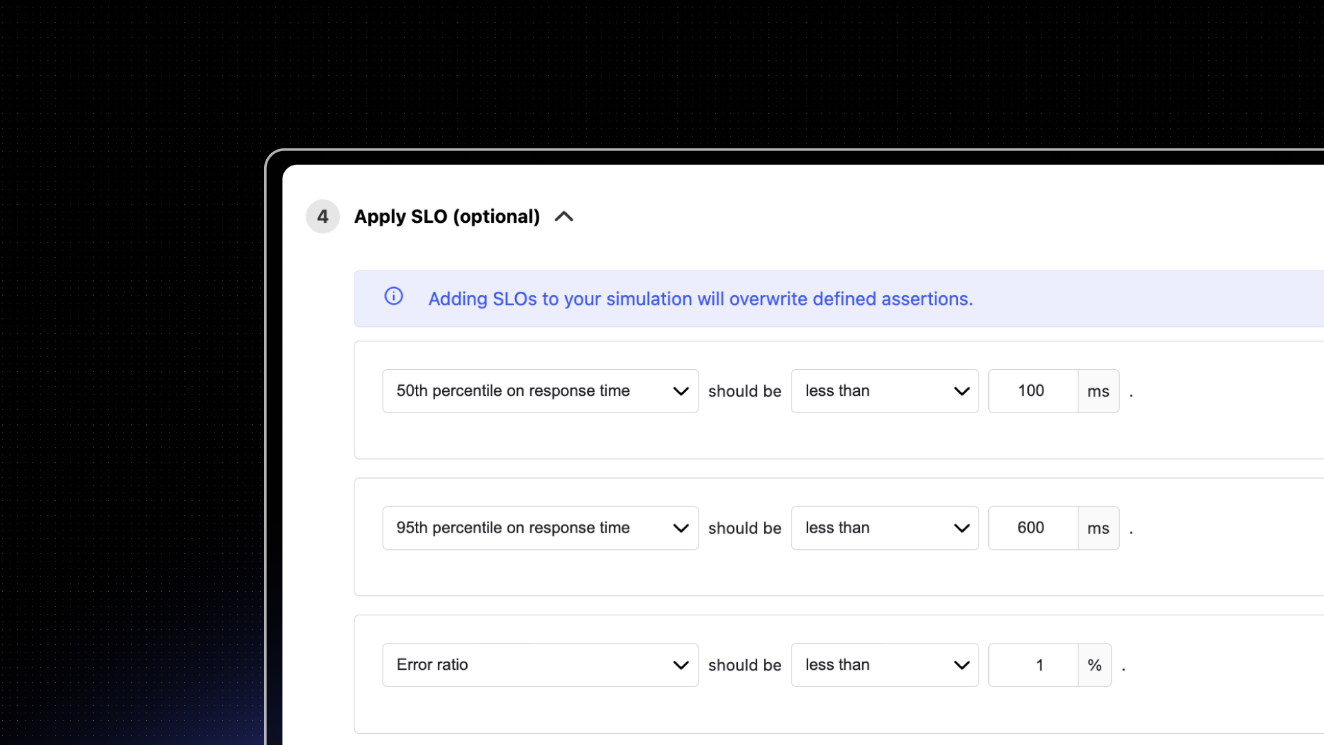 You can stack multiple SLOs on a single test. Each one is evaluated and reported independently.